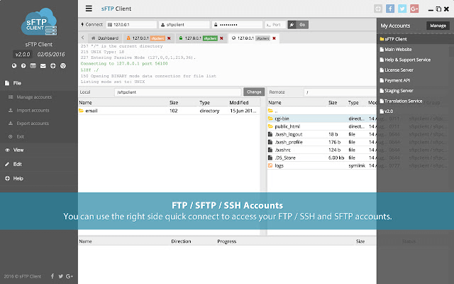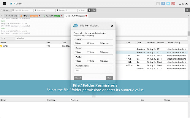 Access your Local or Remote FTP / SFTP server (including your NAS drive, local server, VPS, dedicated server, cloud server or shared hosting) with our full-featured Chrome app.