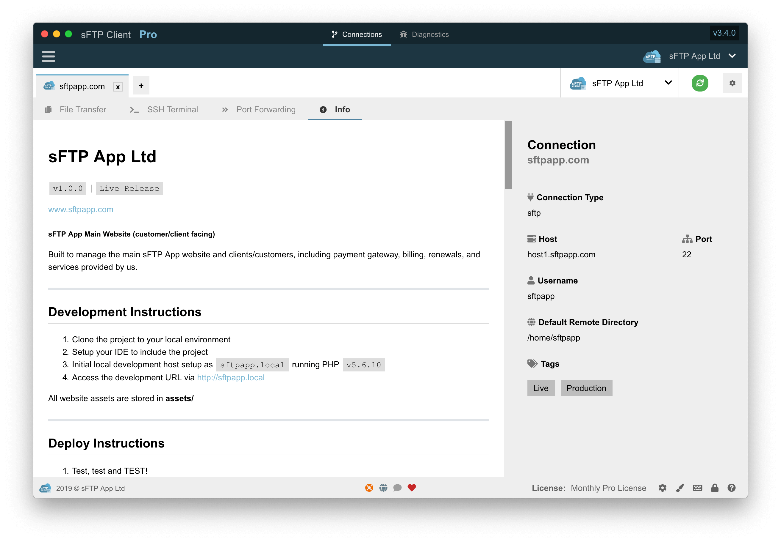 Connect to Servers and Cloud Services, Join Workspaces and Share Connections, Execute SSH Terminal commands (save regular ones for later), Port Forward services between local and remote.