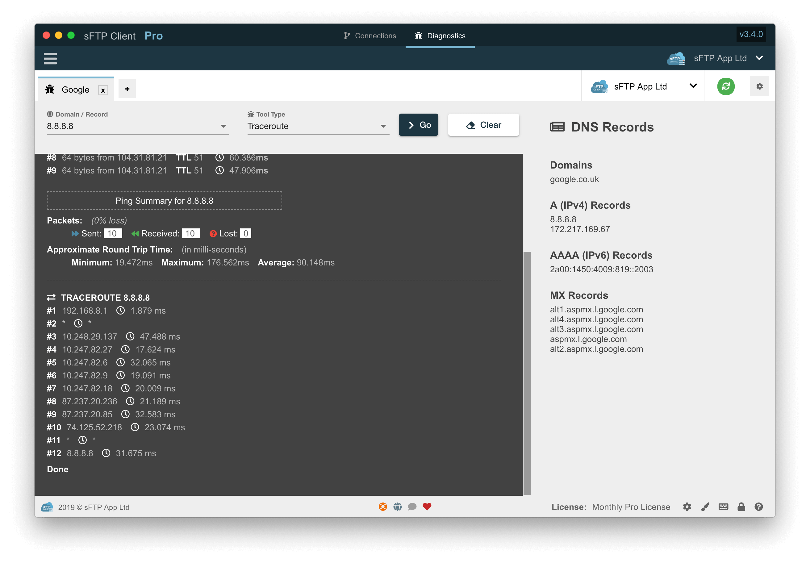 Open a direct server to server connection to transfer files and folders (replaces local directory pane).
