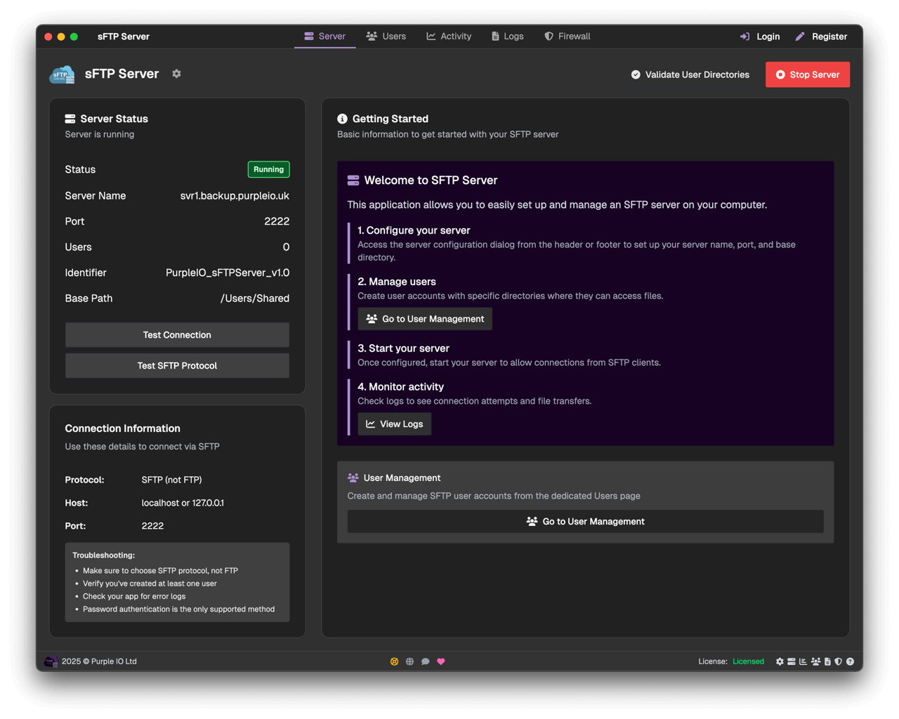Use our sFTP Client app to transfer data to and from your server.